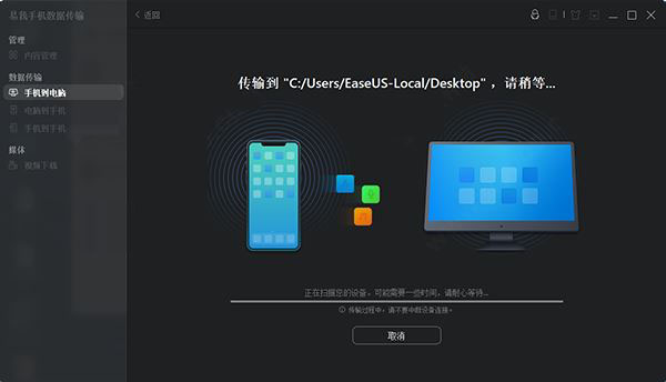 易我手机数据传输免费版是一款可以帮助用户快速的进行智能设备之间的数据互相传输功能软件。这款软件不仅能够帮助用户进行传输电脑和电脑,还可以手机设备,平板设备之间的数据互相传输。并且数据都能保存下载,用户可以选择不保存。最强大的一点事能够进行苹果设备的传输。相信很多用户都知道苹果设备的系统都是封闭独立的,很多都不能够进行操作。这款软件可以操作苹果手机,苹果电脑和平板设备,功能超级强大。每个用户都能够轻松进行使用,支持传输的数据内容也非常全面,用户可以选择照片、音乐、视频、文本、联系人、短信等,也可以自己选择文件进行传输,一键式操作,小白用户也可以轻松搞定你的数据迁移和保存,是不是非常的不错呢。这款软件能够便捷和高效的让用户进行操作,只需三步即可完成全部数据的传输,需要这款易我手机数据传输的用户可以来这里下载体验一下吧。