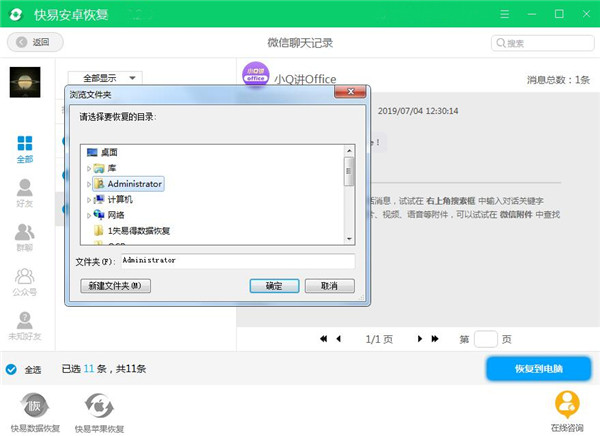 5、勾选需要恢复的文件,然后点击【恢复到电脑】按钮,接着选择恢复路径,就可以把手机文件恢复到电脑上了。