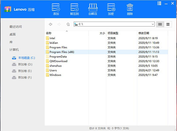 联想压缩官方版是一款功能强大的文件压缩解压缩软件,可帮助用户快速将文件进行压缩或解压,支持大部分的压缩格式,软件提供了压缩、解压、自解压和加密四种功能,且这四个功能全部显示在同一界面,便于用户快速选择,且每个功能都对应一个操作界面,每个功能的操作都非常简单。且支持多种格式压缩解压。让用户轻松解压压缩文件,节省电脑存储空间。用户也可以直接在软件界面查看磁盘或文件夹,还可查看不同文件夹下的所有文件,并将这些文件的相关信息显示在列表中,提供不同的显示方式,以指定方式进行显示。