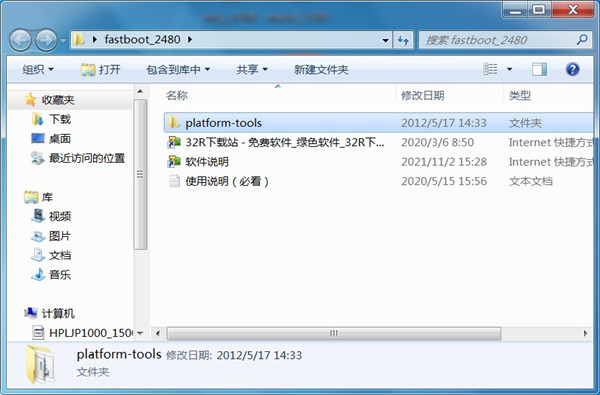 2、将下载的fastboot工具完整解压到D盘的fastboot文件中。