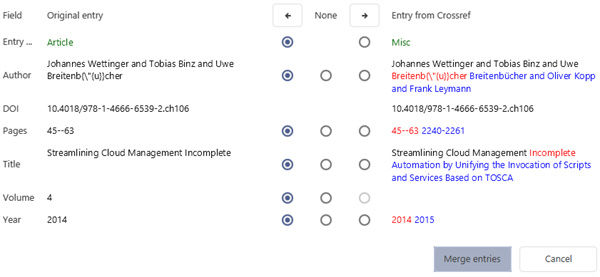 通过与 Google Scholar、Springer 或 MathSciNet 等精选在线目录进行比较来完善和改进书目数据