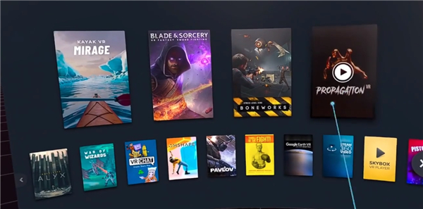 设置完成打开VR一体机进入PICO互联可以看见你已经连接的电脑设备,点击即可进入电脑桌面VR视角,打开我们下载的SteamVR,选择游戏即可在VR中体验Steam游戏,支持添加旗下手柄设备游玩,需另外下载一个游戏串流助手,一同为大家打包在资源中。