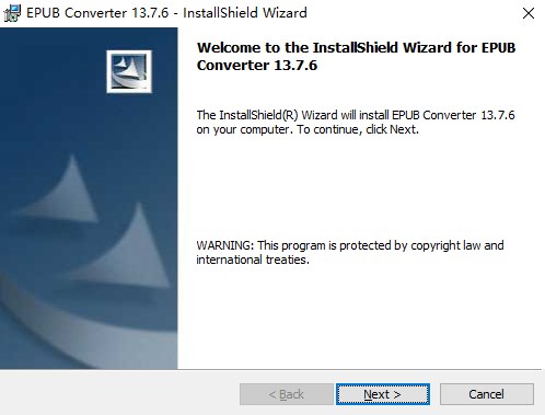 1、解压安装包,双击“EPUB Converter for Windows (ver 13.7.6).msi”,等待片刻自动弹出安装界面,直接跳过点击next