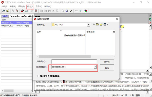 7、修改好后,点击“输出”菜单将文本输出成指定的格式,如txt。