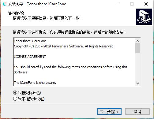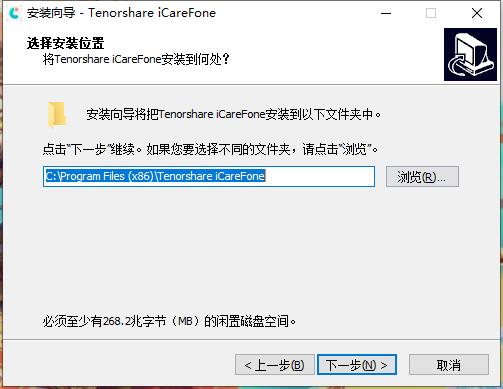 安装向导默认设置的软件默认安装路径为C:\Program Files (x86)\Tenorshare iCareFone
