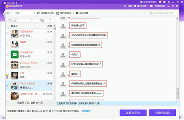 4、备份完成后,会自动打开微消息记录框,并提示可以找回已删微信记录。点击「开始找回」就会有惊喜的发现。
