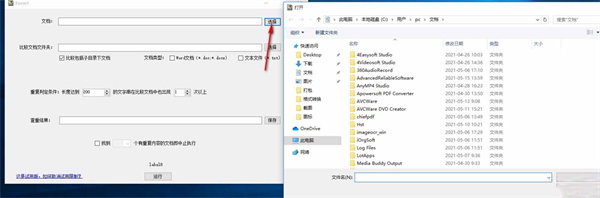 2、点击选择,弹出打开框,选择要查重的文档,添加至软件。