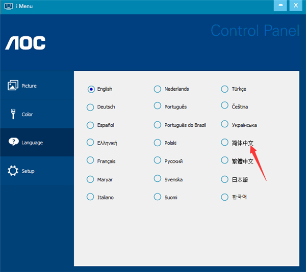 1、解压文件打开i-Menu.exe,进入软件页面点击Language选项