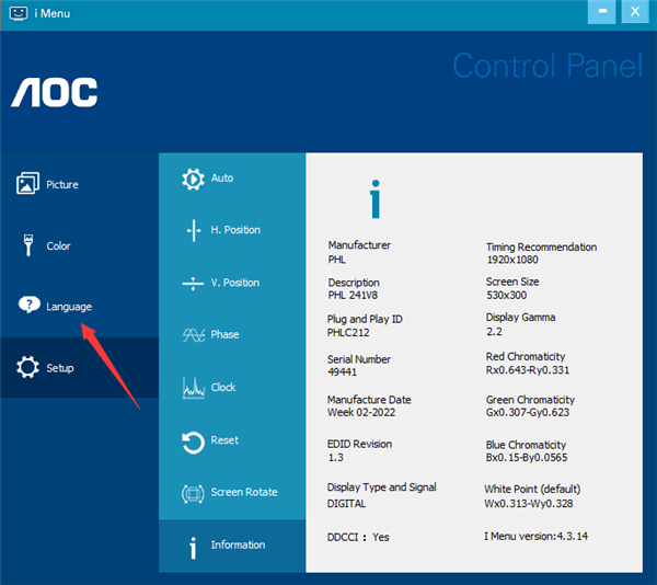 i-Menu中文版是AOC官方发布的一款关于AOC显示器的调节软件,这款软件提供了显示器中内置功能的所有可调节项目,用户只需要使用鼠标就可以轻松完成aoc显示器屏幕亮点、清晰度、对比度等等选项,让显示器的设置更加的人性化。其他的显示器虽然也可以使用这款软件的,但是只能对显示器进行旋转、分辨率调整等部分功能,像其他对比度、清晰度等方面的选项是没有办法调整的。
