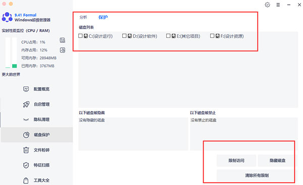4、磁盘保护,隐藏、禁止访问,保护你的所有小秘密。