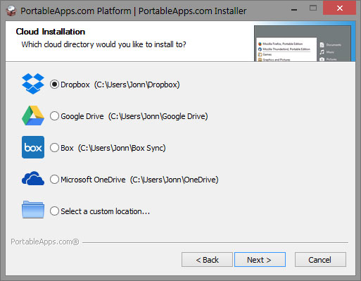 PortableApps.com平台带有一个智能安装程序,可让您轻松地将环境安装到云驱动器(Dropbox,Google Drive等),供个人或共享使用的本地PC或便携式设备上。这些应用程序是便携式的,可在您工作的任何地方运行,从而使您可以轻松地将应用程序和数据随身携带并安全地备份到云中