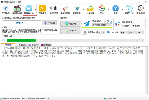 录音啦电脑版是一款实现文字和录音相互转换的工具。本软件主要功能有会议录音,录音转文字,文字转语音三大功能。在工作会议中,记录会议内容通常是人工记载,现在你可以使用录音啦的会议录音功能了,支持录音后快速转换为文字,目前本软件识别引擎有云知声,科大讯飞、百度,识别技术都是非常先进的,让你在开会的时候快速记录会议内容。还可以录制电脑的声音,比如在网上看到一些视频教程可以使用此功能,直接将使用转换为文字内容,非常方便,大大提高工作效率。