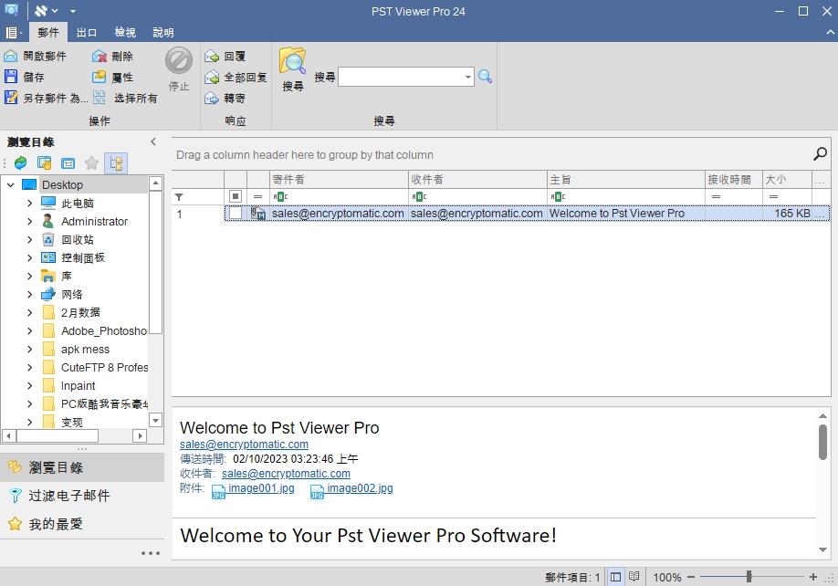 1、以MSG、EML和PST格式查看邮件的标题、正文和附件。