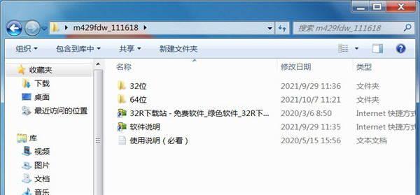 1、从本站下载惠普m429fdw扫描打印机驱动压缩包后,将其解压后即可看到32/64位的驱动适配版本;
