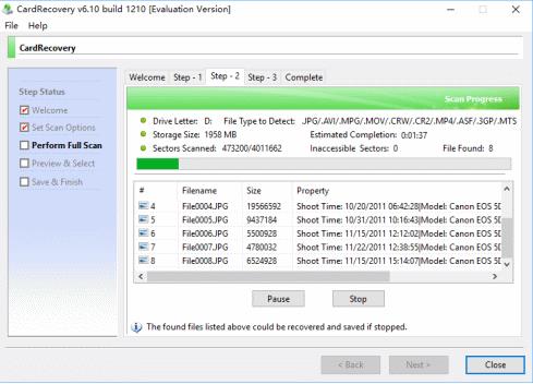 3、完全扫描您的存储卡,扫描过程非常快,在我们的测试中,大约需要20分钟才能完全扫描64 GB SanDisk SD卡