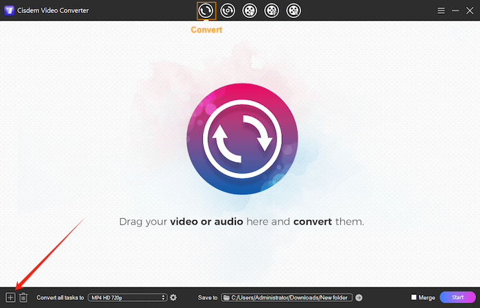 一、添加视频 1、选择“转化率”选项卡,然后您可以通过拖放或单击“+”主界面左下角来导入视频。