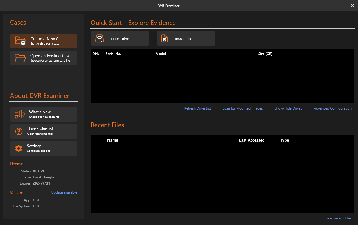 DVR Examiner是一款专门用于恢复DVR数据的辅助工具,软件非常易于使用的DVR数据恢复解决方案软件,可通过直接从DVR中恢复数据来绕过那些密码来从可疑DVR中恢复视频,您可以直接从DVR硬盘中快速提取证据。DVR Examiner可以帮助用户们在恢复视频的证据中来节省团队时间以及金钱,还能够在运行的DVR中,来扫描以及无人值守的一种导出,也就是因为这样用户们还可以在程序恢复那个重要的视频的证据时,就可以专注于其他的一个任务;DVR Examiner还可以识别出各种DVR文件系统,轻松的对视频进行剪辑,并且软件内置了一个播放器,可以观看DVR视频,不需要额外的DVR播放器。特此小编这里就为大家提供的是DVR Examiner免费版,内置软件Keygen文件,可帮助大家免费注册使用软件,并且下方附带了最新的安装教程,有需要的用户快来下载使用吧!
