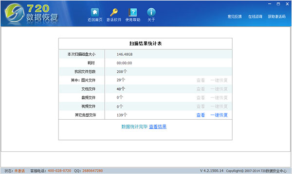 意见反馈:用户可以将软件使用情况信息反馈给720数据安全中心,我们将及时处理和完善软件,进一步提高软件恢复效果。