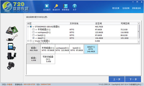 1、安装时一定不要把720数据恢复软件安装到你要恢复数据的磁盆上。
