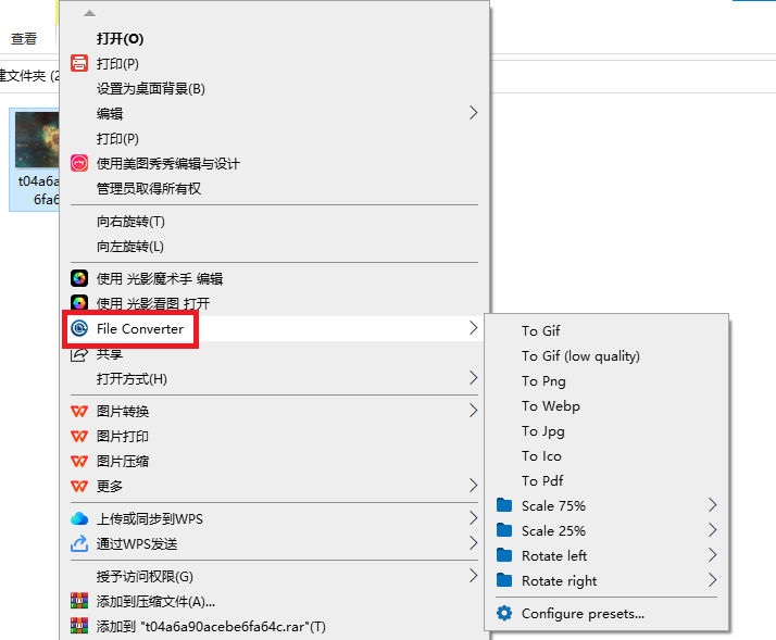用户可以大量自定义应用程序,以便在文件上下文菜单中添加/删除转换预设,或编辑现有的转换选项。