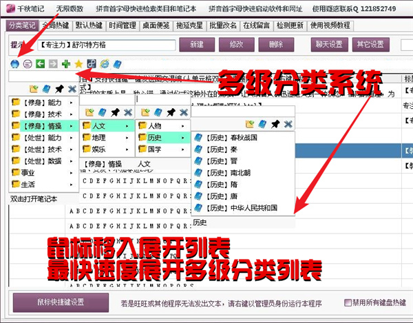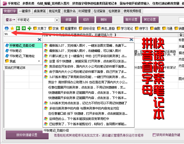 3、支持拼音首字母快速检索类目及笔记本,实现笔记的极速精准定位。