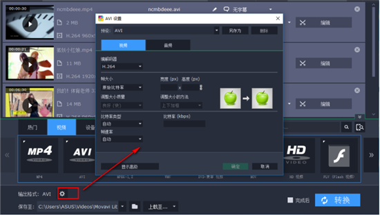 6、选择相应的视频后,您还可以选择具体的视频编码格式。