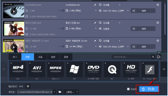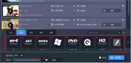5、若您需要转换视频,可以点击“视频”,然后选择我们要转换的视频格式。