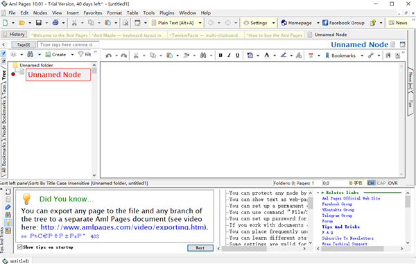 Aml Pages(文件处理)官方版是一款功能强大、操作简单、实用性强的文档管理软件。Aml Pages软件主要采用树状图的创建模式,为用户提供高效的文件管理操作。用户通过Aml Pages不仅可为文件添加密码,而且还支持文件、文档的搜索预览功能,支持同时地在若干不同文件之间工作,以短暂的标题记录代表书签,简单和方便的在页之间转换。