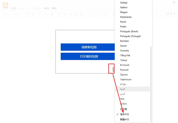 大部分的绘图应用都离不开三个基本的元素,图形,链接,文本。每个元素都有基本的操作和样式,元素与元素之间又可以进行组合,“三生万物”,生成各种各样的图表。 1、首先打开draw.io desktop,发现默认是英文语言,这时点击Language选择简体中文,再关闭软件后重新打开就是中文界面了;