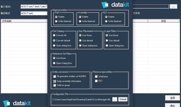 当您单击名为“配置”的按钮时,以下是DATAKIT CrossManager 2023程序配置设置: