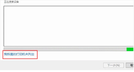4、点击我所需的打印机未列出;