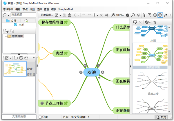 simplemind pro电脑版是一款新型思维导图工具。有了这款软件帮助你,能够让用户工作中大大提高工作效率的实用助手!许多人士都对这款软件赞不绝口!它功能强大又简单易用,可以自由摆放各个节点,并可以在上下级节点之间插入一个新的节点,还可以与DropBox同步。