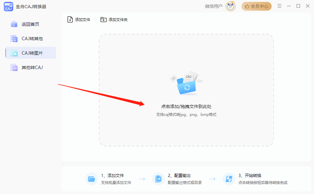 1、电脑双击运行软件,根据需要选择对应的功能选项,这里以「CAJ转图片」为例;