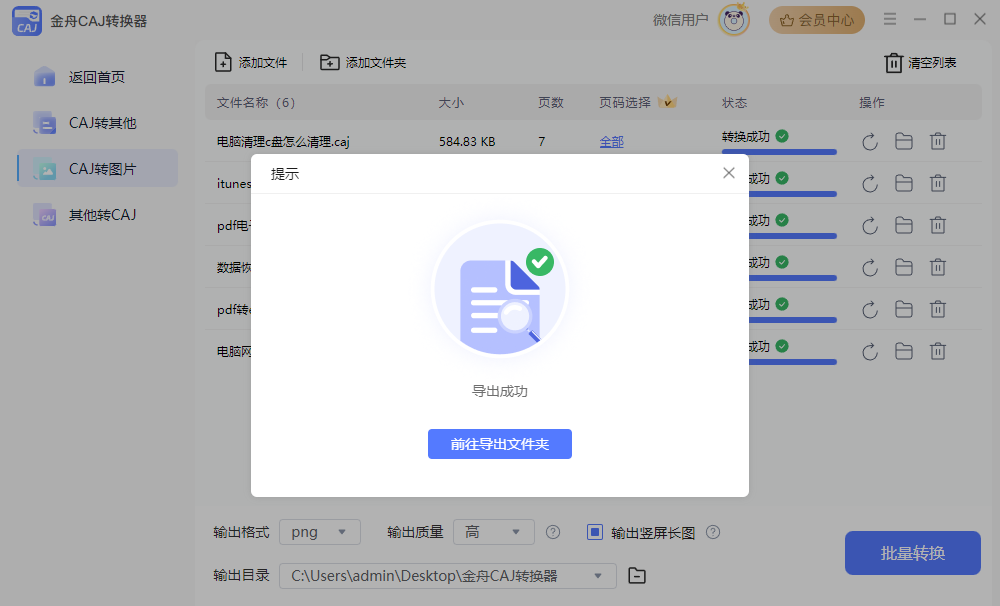 6、转换完成后,点击前往导出文件夹查看转出来的图片文件吧;