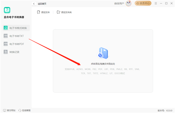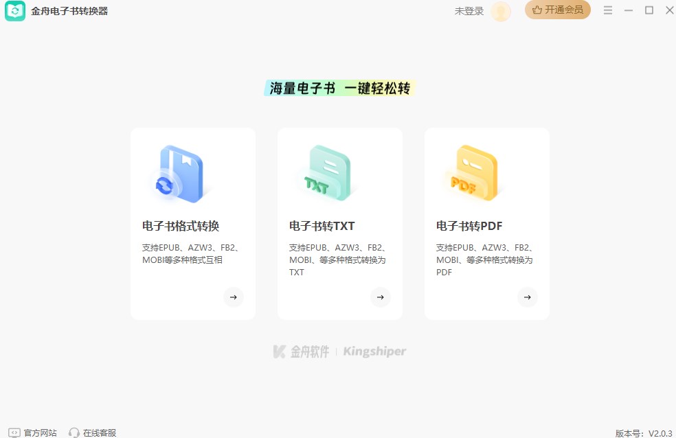 1、双击图标运行金舟电子书转换器,根据需要选择转换功能。