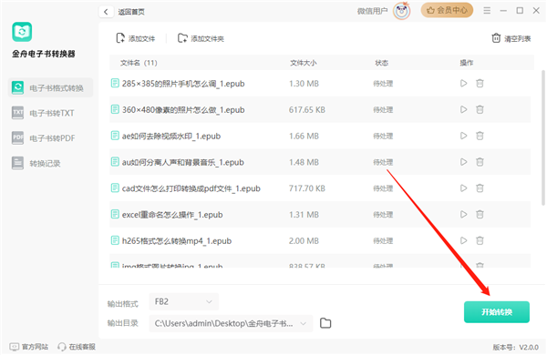 1、高效稳定,效果出众 强劲性能助力可将不同格式的电子书转化为您需要的格式,轻松处理电子书文档,高保真还原电子书。 2、功能全面,多格式转换 支持市场主流电子书格式间的无缝转换,不再为书籍格式限制而烦恼,方便您快速获取阅读所需。 3、一键操作,批量处理 一键式操作设计,小白轻松上手;简洁明了的界面让您无需繁琐操作。金舟电子书转换器使用教程