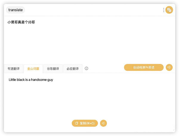 这个插件整合有道翻译、金山词霸、谷歌翻译、必应翻译。