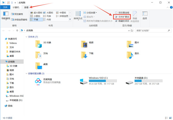 6、注意:如果没看到图片的后缀名,需要进入“此电脑”,点击文件选项中的“查看”,开启“文件拓展名”。