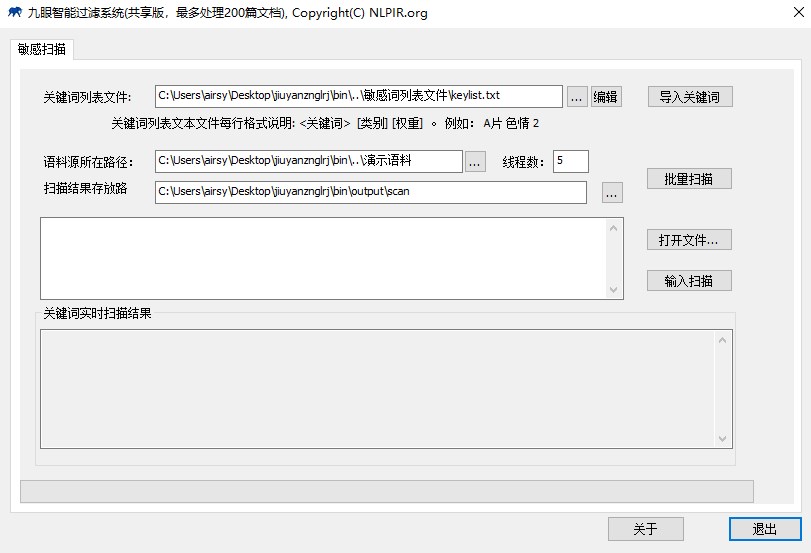 九眼智能过滤系统官方版是一款功能强大、实用性强、并能够利用自然语言理解的智能过滤系统软件。九眼智能过滤系统为信息的智能实时过滤提供了全新的技术解决方案,可实时智能识别关键词音变、形变与拆字等常见变体,并实现了语义的精准排歧,系统内置了国内最新最全的知识库,适用于多场景不文明信息内容的智能过滤,适用于国家安全、互联网内容发布、传媒出版等领域。另外,九眼智能过滤系统可过滤用户指定的关键字信息,使用九眼智能过滤软件可对语料源进行全面的扫描,即便是关键词出现了变体,软件也可以轻松的扫描出来,真的是非常的强大。九眼智能过滤系统目前拥有三大技术核心:智能变种、语义排歧和快速实时,智能变种识别可以自动识别形变词、音变词、拆字、噪音、繁简体、全角半角、中间加各类干扰噪音等变体;语义排歧利用NLPIR语义精准分词系统与情感分析系统,可以精准识别与过滤,排除正面无害的信息,从而快速实时支持单机多线程、多机并行、Hadoop云服务模式,可以高效在线核查,从而满足用户的过滤要求。是不是心动了呢,那还犹豫什么,跟我一起下载吧。九眼智能过滤系统,你值得拥有。