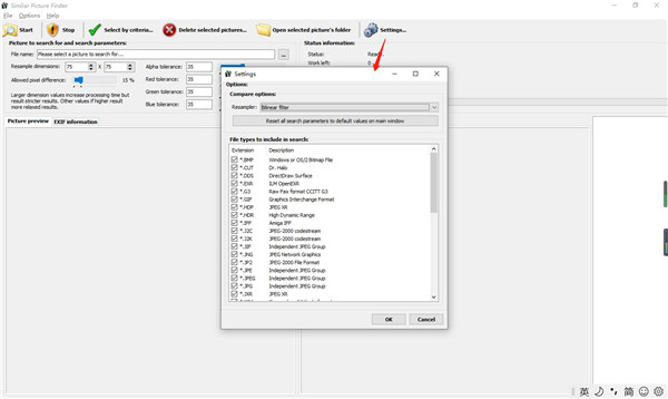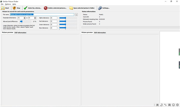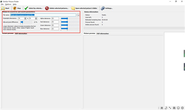 1、自定义搜索参数您需要首先选择源图像,该图像被视为参考图像,还可以在专用面板中预览它,并分析其相应的EXIF信息,然后,调整允许的像素差和重采样尺寸,最后一步是修改alpha,红色,绿色和蓝色值的公差级别