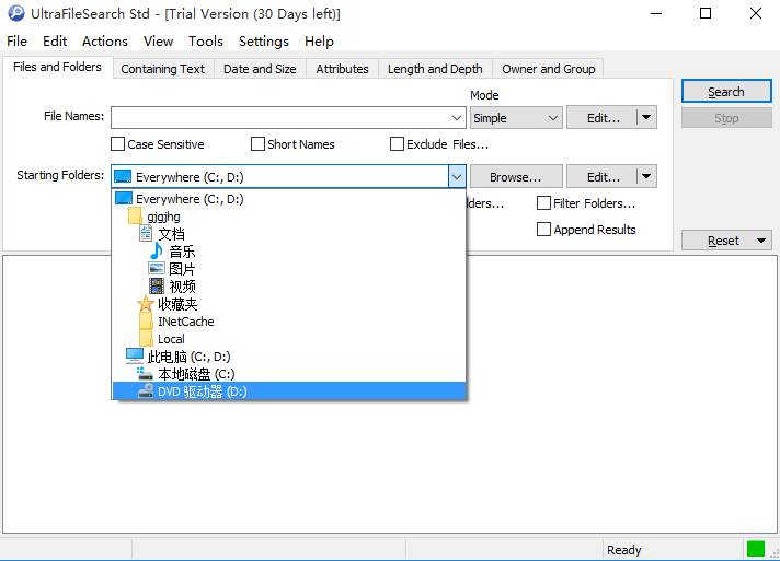 5、可以搜索多个驱动器和/或文件夹在同一时间。