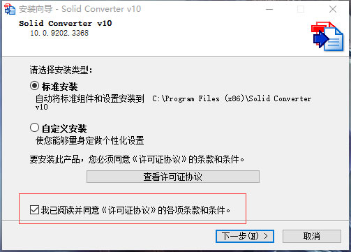 2、选择安装方式进行安装,小编选的是标准安装。同意许可协议进行安装。