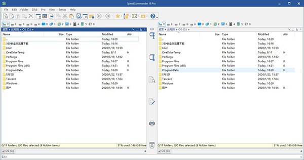 SpeedCommander始终更改为驱动器的最后一个目录。当例如在C:\Windows文件夹的左窗格中,右侧文件夹窗口的驱动器C将更改为C:\Windows。如果要切换到驱动器的主目录,请按住Shift键同时单击鼠标左键。