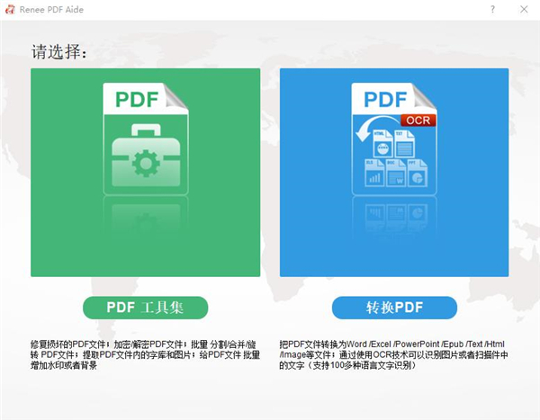 Renee PDF Aide官方版是一款简单好用的PDF转换器,PDF格式是商业文件中最流行的格式,但却难以编辑,本软件可分分钟让你的PDF转换为可编辑的Office格式。轻松将你的PDF文档转换为 Word / Excel / PowerPoint / Image / TXT/EPUB等文档格式,并且速度超级快,每分钟可转换200页,并且它还拥有光学字符识别功能,快速辨认图片或者是扫描件中的文字,速度高达80页/分钟。它简单,快速,高质量的将PDF转换成最流行的文件格式,软件内置OCR(光学字符识别)技术,将图片转换为文本文件,完美兼容微软Office,支持全系列Windows系统。可将扫描所得的PDF转为基于文本的格式,获取更多可编辑的文件信息,大大提升您的工作效率。软件功能强大,操作简便,该款工具包含PDF转word、PDF转excel、PDF转图片、PDF转ppt、PDF转html、PDF转text、PDF转ocr七大功能,集成了先进的OCR技术,大大提高转换效率,是目前比较流行好用的一款PDF转换器。