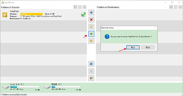 4、一键移动选定的文件夹。SymMover将移动文件夹,并创建一个符号链接。
