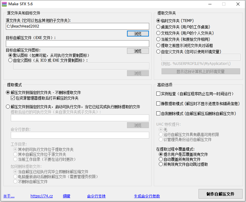 Make SFX是一款免费的自解压创建工具,它能够在 Windows 32/64 位平台下快速生成自解压文件,让普通压缩包也能一键运行,方便软件分发和安装。Make SFX自解压创建工具界面简单,操作直观,非常适合用来制作自解压安装程序。唯一的小遗憾是它不具备压缩率优化功能,但在自解压场景下依旧非常实用,欢迎有需要的朋友下载使用!