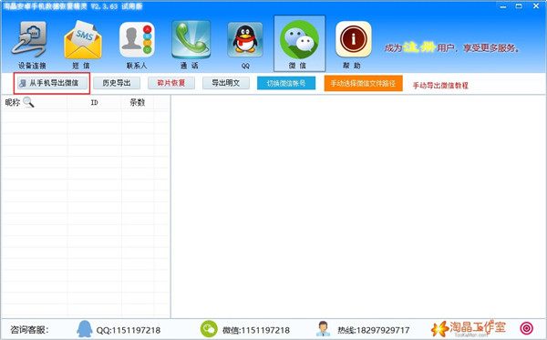 淘晶安卓手机数据恢复是一款专门针对安卓设备开发的数据备份查看与数据删除恢复软件,淘晶安卓手机数据恢复软件支持所有的安卓设备,完美兼容小米、红米、魅族、vivo、oppo、三星、华为等主流安卓手机(包含平板),提供支持短信、联系人、通话记录、微信、QQ等常见应用的数据导出查看及一键恢复,浏览删除等操作,只要相关碎片存在即可完全恢复出删除的数据。淘晶安卓手机数据恢复精灵操帮您恢复不管是误删除的数据,还是意外破坏的数据,都能帮您一键备份恢复,非常的方便,欢迎有需要的下载体验!
