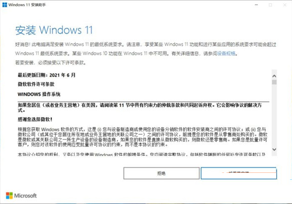 2、确认兼容性没有问题后就可以正式的安装Windows 11 啦,点击“接受并安装”按钮。