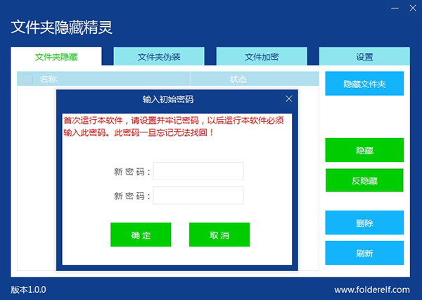 你可以设定一个密码,这样只有您可以进入本程序,别人无法使用,更不用提知道您隐藏了哪些文件了。使您的隐私和数据更安全。