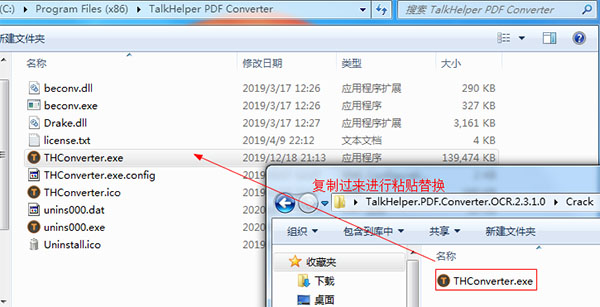 6、将Crack夹中的THConverter.exe破解文件复制到程序安装目录中进行粘贴替换